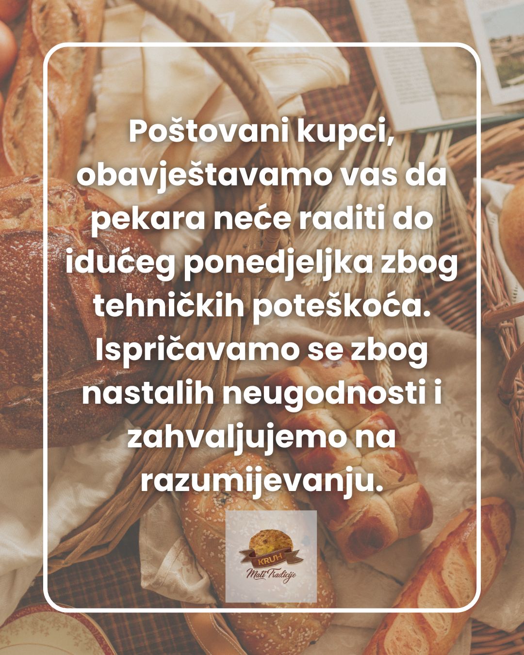 Zbog velike zainteresiranosti i ukazane potrebe za domaćim proizvodima, najsigurnije da nas nazovete i naručite Vaš kruh na vrijeme.